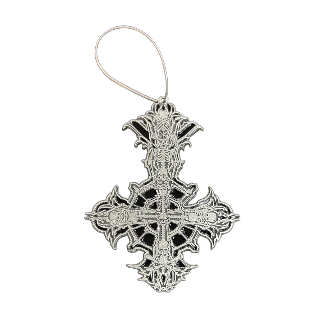 Bring a touch of the darkly divine to your holiday décor with the Papa V Grucifix Ornament. Standing 4 inches tall, this silver-tone ornament features the iconic Ghost Grucifix design, adorned with ornate gothic flourishes. Perfect for fans of Papa Emeritus V, it’s equal parts festive and unholy—whether it hangs from your tree, mantle, or anywhere you want to summon a little holiday spirit.