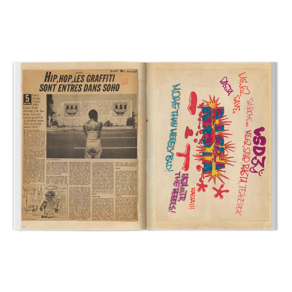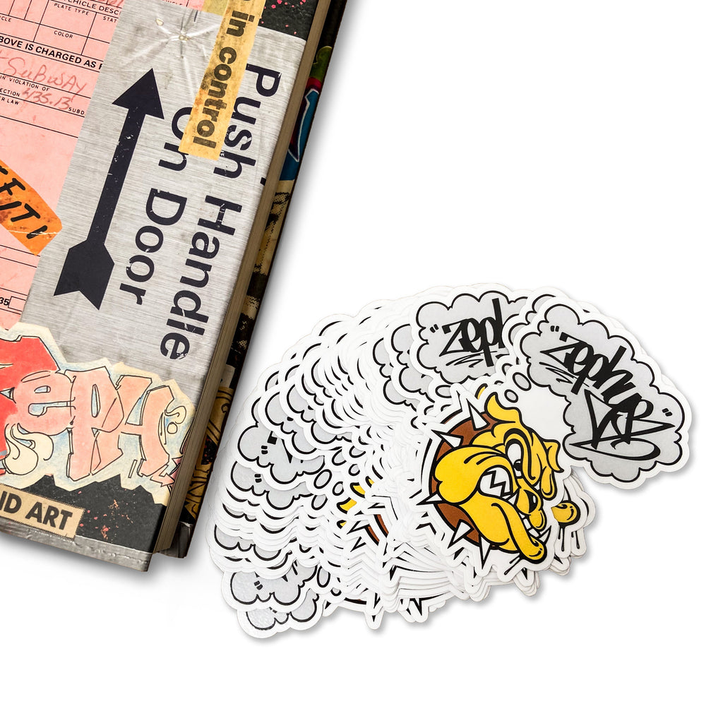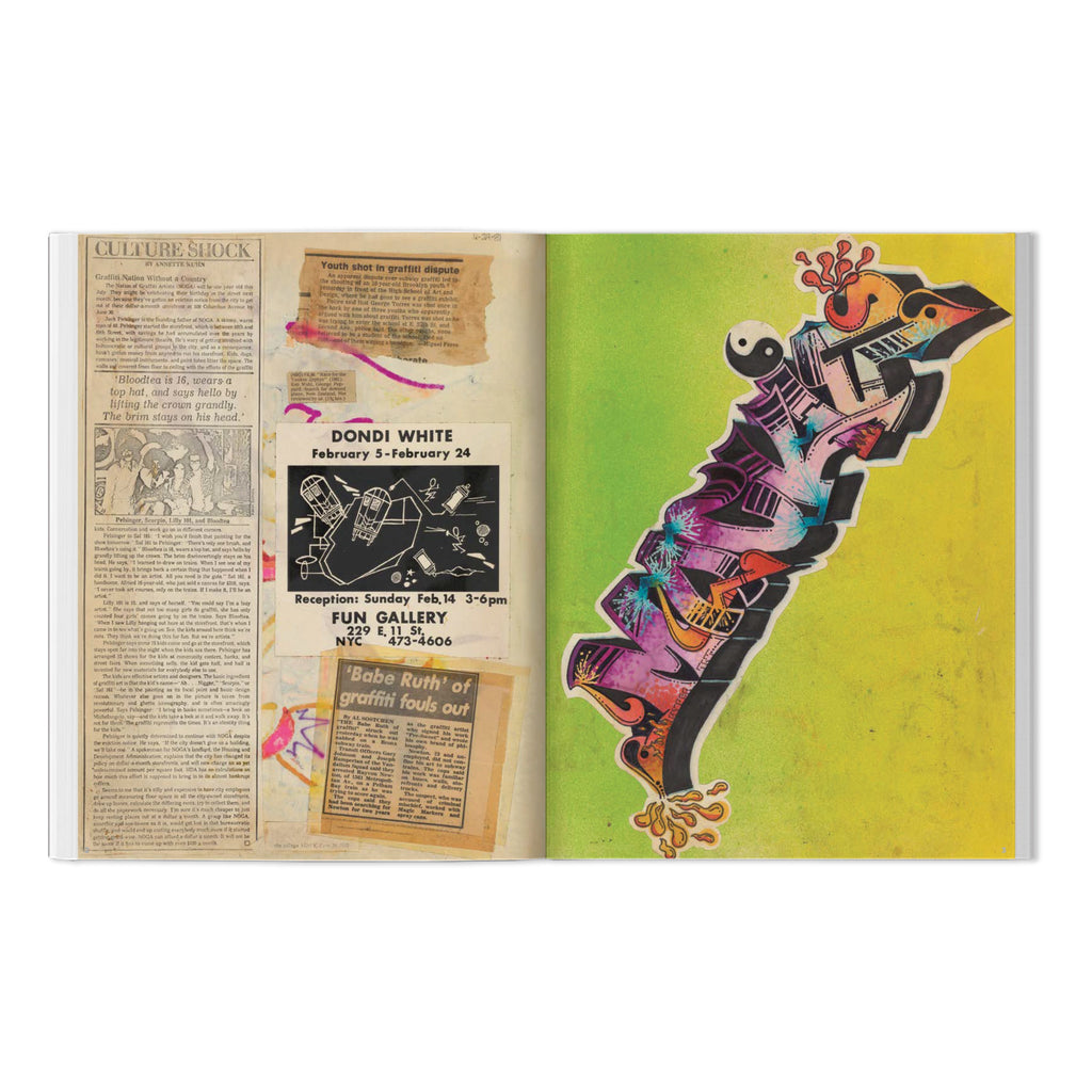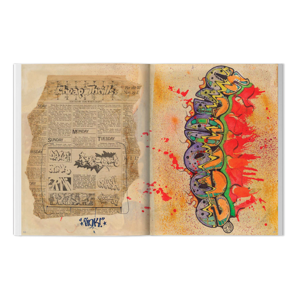 ZEPHYR began his graffiti journey in 1977. The following year he began developing a sketch book, a veritable time capsule of the culture at the time. BEYOND THE STREETS has presented the book here—an exact reproduction—complete with page by page commentary by ZEPHYR. Over the years, this book evolved into a vibrant history of graffiti culture, enriched by contributions from renowned figures like MACKIE, BIL-ROCK, REVOLT, FREEDOM & FUTURA. It also contains a rich collection of news clippings, ticket stubs, MTA items, flyers, old snapshot photos, doodles, and various other artifacts that highlight his fervor for graffiti.